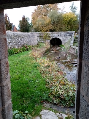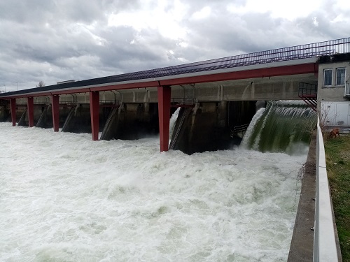 A lovely little village beside a high dam holding back an offshoot of the Po river.
