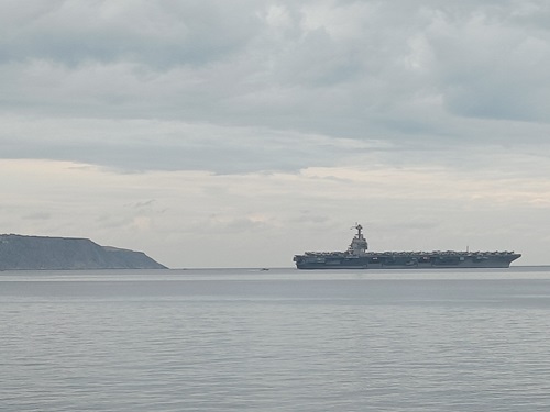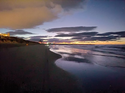 Just a beach. Ocassional wind a shower and a view of the ferries arriving and leaving.