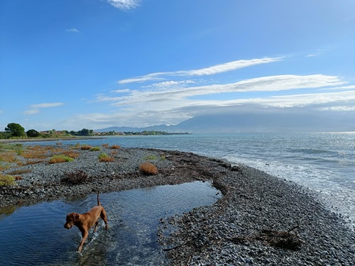 After yet another fabulous walk in the hinterlands with good friends as the dogs rush hither and thither, we head to favourite place which I hope will be a bit quieter for poor Zoa - he really is quite upset about any loud bangs as he ages. That in spite of him visiting a shooting range up close as a puppy.
