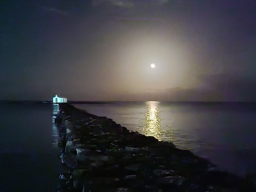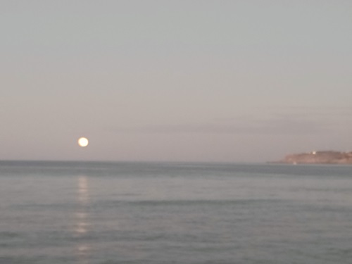 We walk up the hill and also to the lighthouse. I notice I have aged. Some young boys annoy Zoa by exploding fireworks.